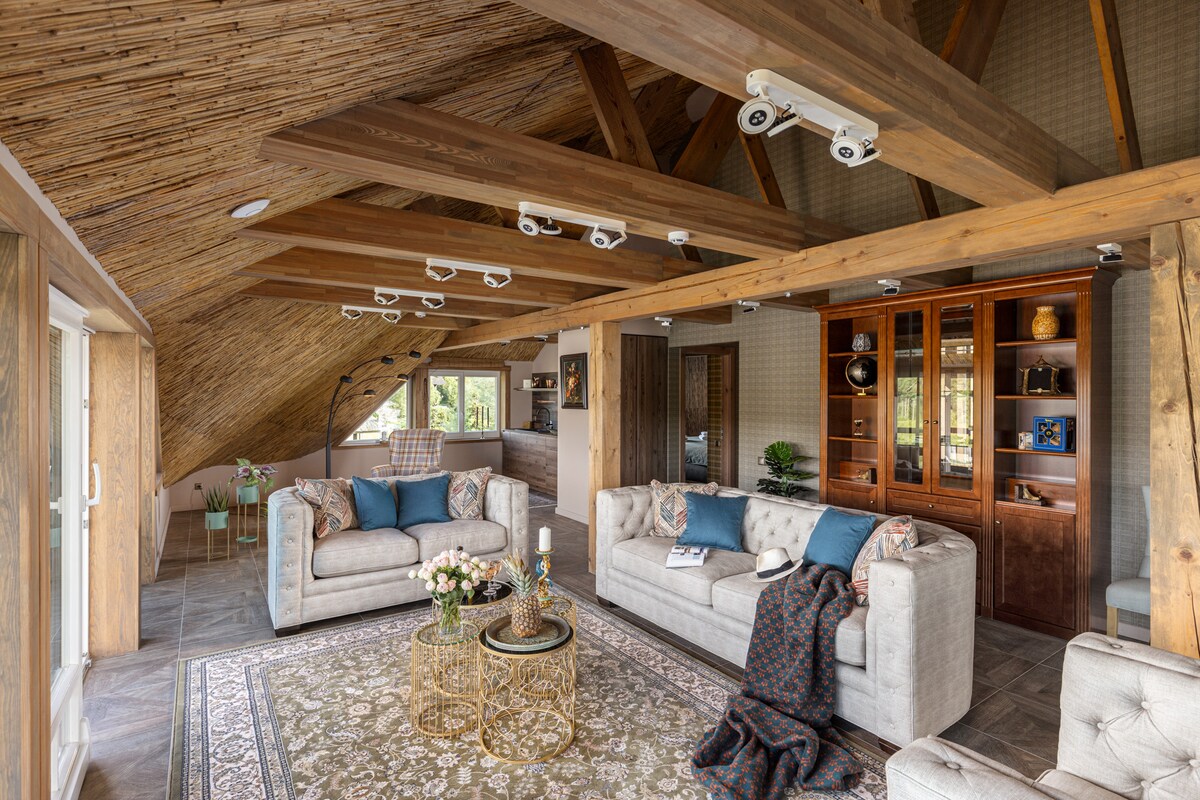 Escape to Villa Svires for an unforgettable retreat amidst the serene beauty of Amatciems, a private eco-village where nature reigns supreme. With its sweeping views of Amatciems' largest lake, this tranquil oasis offers a unique experience. This 5-bedroom retreat accommodates 9-11 guests( 5 bedrooms + sofa bed), offering a dedicated private spa with a sauna, hottub, and serene lake . The perfect getaway for a couple seeking a romantic getaway or a group of friends in search of relaxation.
