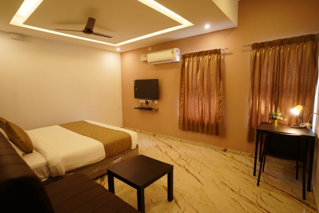 Escape the city noise! Hotel Madurai Comforts offers a peaceful stay surrounded by greenery. Our unique location ensures a low-noise environment, perfect for a restful night’s sleep. Experience a nature-filled oasis with plenty of open space and privacy
