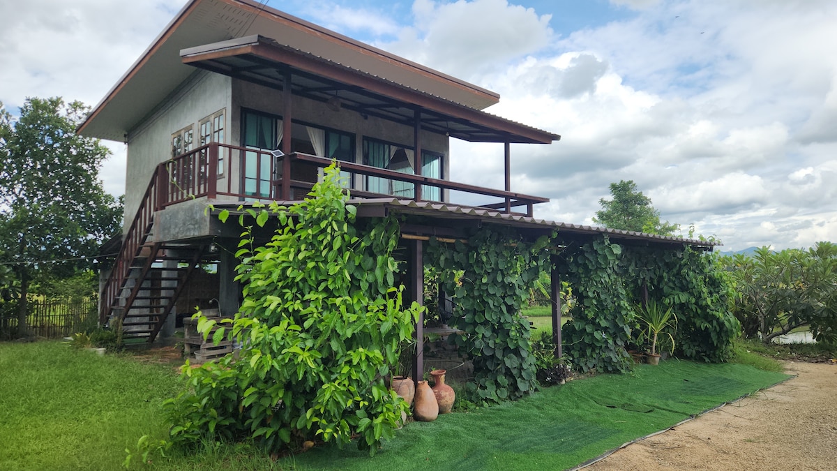 Your 'happy, healthy, healing home with heart', only 30 minutes from Chiang Mai. Revive and reconnect with family and friends in our charming, cozy, spacious guest houses, nestled in rice paddy. Relax on the balcony, overlooking our serene fish pond, with breathtaking views from sunrise to sunset. Head to the village to meet local artisans and enjoy fun, hands-on activities. Explore local forest, hills and lakes on foot or bicycle. Price includes a delicious breakfast and free use of bikes!