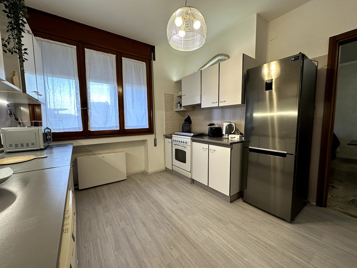 We love to host and make your stay special with kindness and smiles. Cozy apartment in a residential neighborhood, bright, wood floors, dishwasher, washing machine, air conditioning, wi-fi, perfect cleanliness. BUS stop to Venice 300 meters away: 45 minutes ride. TRAIN station 2 km away, free parking, the train reaches Venice in 20 minutes. If you have a car, it's ideal for visiting Treviso and Padua with the highway 3 km away. Stroller available for babies.