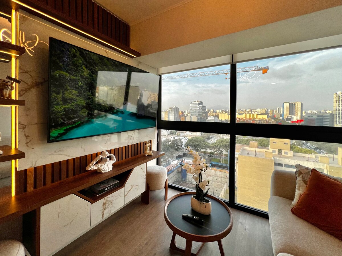 Luxurious Airbnb with breathtaking ocean views, blending modern elegance and ultimate comfort. A block way from the NEW “Puente de la Paz”. Relax in a chic, cozy space with state-of-the-art air conditioning, lightning-fast fiber optic Wi-Fi for remote work, and premium appliances. TOTO toilet. Walking distance from Maido the #1 restaurant in the world (2025) and Central (2023), plus top-tier eateries, artisanal coffee shops, museums, and Larcomar mall.