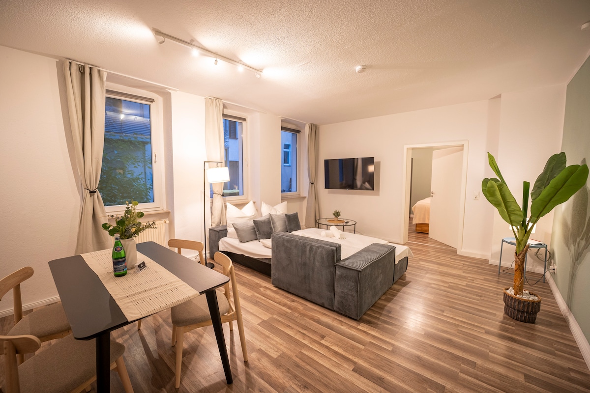 Our charming 25 sqm apartment is located in the heart of Magdeburg, just a few steps from the main train station, and offers everything you need for a comfortable stay. The amenities leave nothing to be desired: enjoy relaxed streaming with Netflix and Waipu TV, cook in the fully equipped kitchenette, or use the washing machine for longer stays. The layout includes a cozy living, dining, and sleeping area as well as a modern bathroom with a shower.