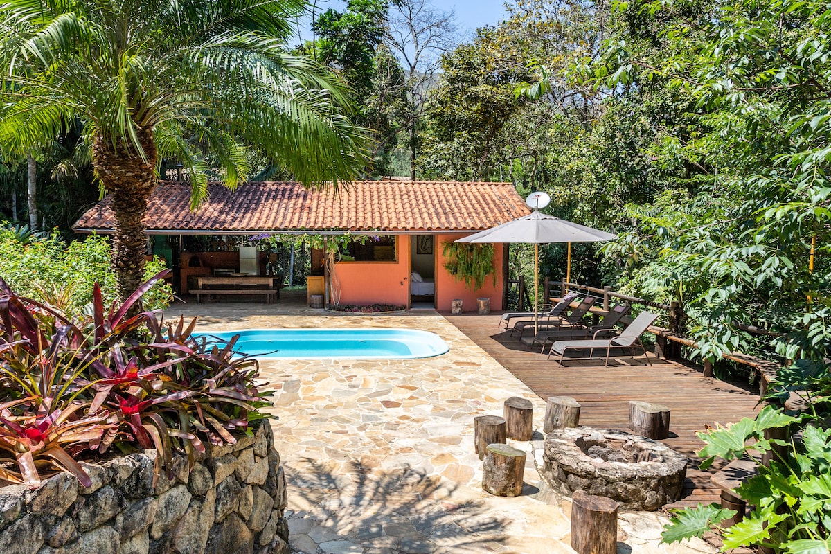 Spacious and cozy house in the middle of the Atlantic Forest, with a stream, mountain views and super quiet. Perfect for family moments and reconnection. 10 minutes from downtown Itaipava and easy access. The space The house has an indoor and outdoor fireplace, the suite has a queen-size bed, 50-inch TV, hot and cold air-conditioning. The hammocks, pergola, barbecue and shower make the leisure space super pleasant.