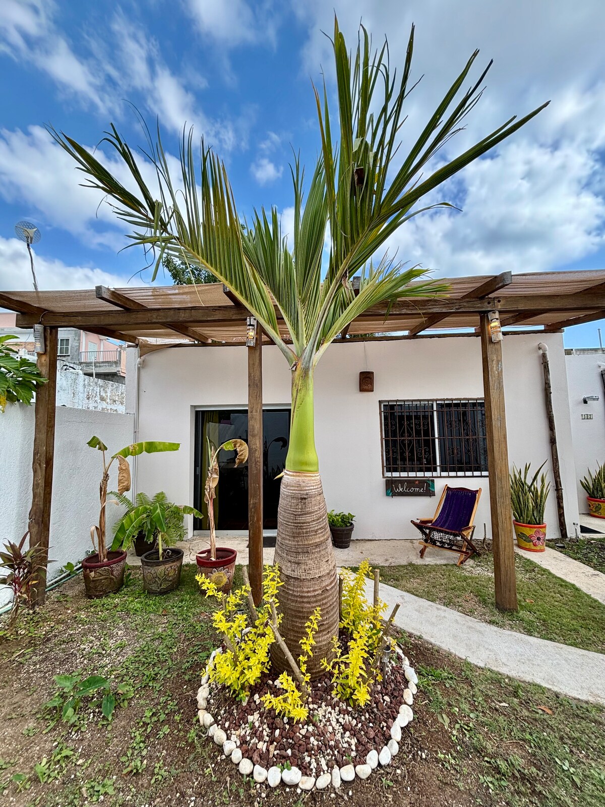 Welcome to Casa Las Palmas, your private tropical hideaway just a 20-minute walk from the white sand beaches and turquoise waters of Mahahual. Tucked away in an area surrounded by lush greenery, this charming two-bedroom home offers the perfect balance of comfort, nature, and Caribbean vibes. Relax in the spacious garden filled with palms and native plants—ideal for morning coffee, stargazing, or simply unwinding in total privacy.