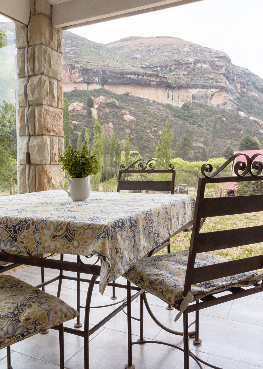 Riverside Cottage is a newly renovated, 4-sleeper with incredible mountain views. The covered outdoor patio offers ample space to enjoy the quiet countryside, the sound of the calming river and the magnificent sunset view. Riverside Cottage is part of Ledges Retreat, a small guest farm in the Northern Drakensberg, located in a picturesque, peaceful valley. We are close to the Royal Natal National Park - home to the Tugela Falls and Amphitheatre.