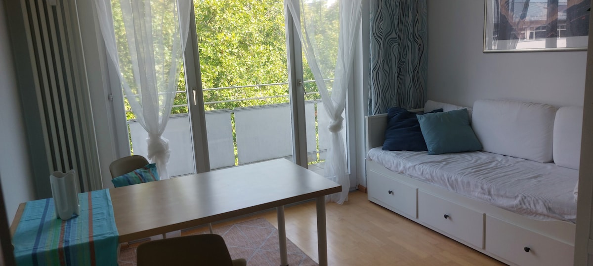 Die Atelierwohnung befindet sich im EG eines 3 Parteienhauses mit separatem Zugang. Die Wohnung ist komplett neu eingerichtet und renoviert. Eine große Wohnküche und Bad sorgen für Wohlfühlatmosphäre. Die Strassenbahn hält 50m vor dem Haus. Innenstadt und Bahnhof sind in 7min zu Fuss zu erreichen. Die Wohnung ist mit Reiseutensilien wie Fön, Duschgels, Handwaschmittel, Bügeleisen, Regenschirm etc. ausgestattet.