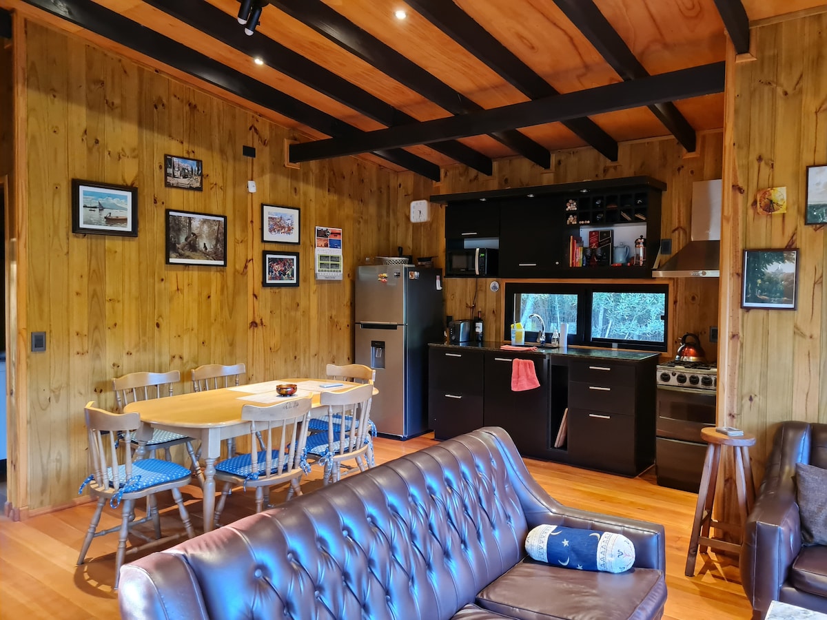 Cozy cabin in the woods of Punta Ballena. Ideal to get away and relax in a natural and very peaceful setting. Steps away from the Lussich Arboretum, ideal for hikes, rides, and enjoying a coffee with a delicious La Checa cake. Minutes from Solanas, TĂo Tom, Las Grutas, and Chihuahua beaches. We have a set of sun loungers and a parasol with UV protection. In winter we'll wait for you with the fire lit. The house is fully furnished to make you feel at home.