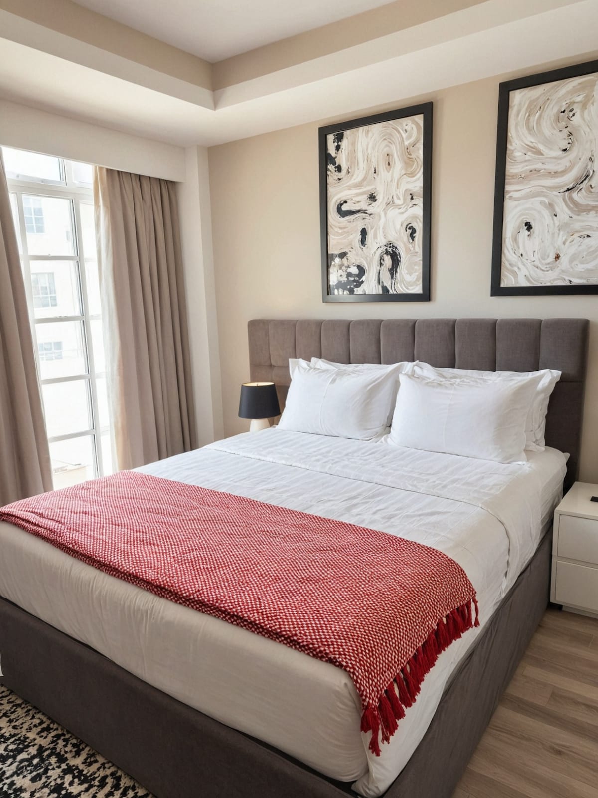 1-bedroom apartment located in the prime area in Hulhumale, Maldives with a Modern bedroom, kitchen and living area. 1-minute walk to the beach, close to out-door activities, shops, restaurants and hospitals. Good for small families, couples or solo travelers. Close to the ocean for swimming or relaxing. That’s it your spot in the sun.