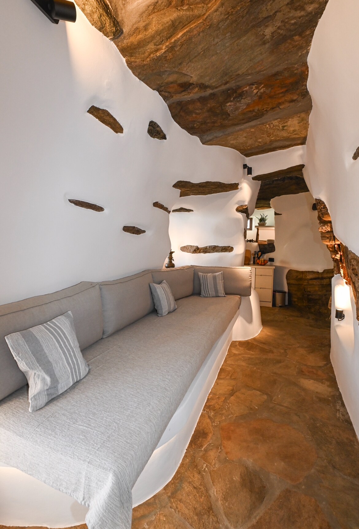 EARTHY is a centuries-old Cycladic home given fresh life in the village of Isternia. Utmost attention has been given to highlight the building's organic and idiosyncratic nature. The stunning archways, 100% natural plasters, brick-laid floors, and garden patio make this space a unique and tranquil getaway. Come get EARTHY!