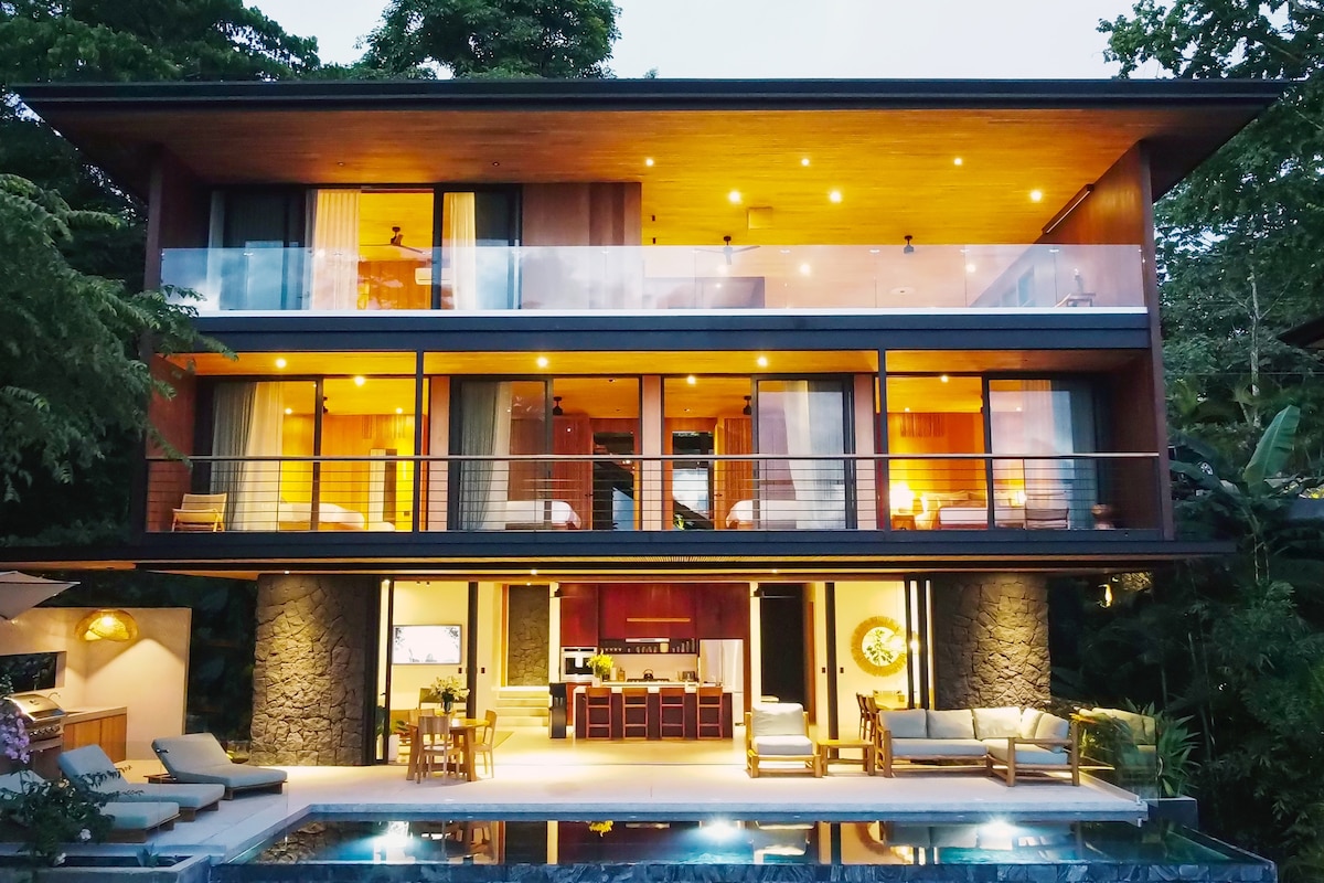 Perched high above on a lush mountainside, Villa Elu offers stunning unobstructed views of the waves below Playa Hermosa beach. With incredible ocean views from every bedroom, each with its private entrance, Elu delivers a truly unmatched vacation experience. From a full-time concierge, and saltwater infinity pool, to the constant sounds of waves crashing in the distance, absolutely no detail was missed in this 12,900 sq. ft brand-new masterpiece.