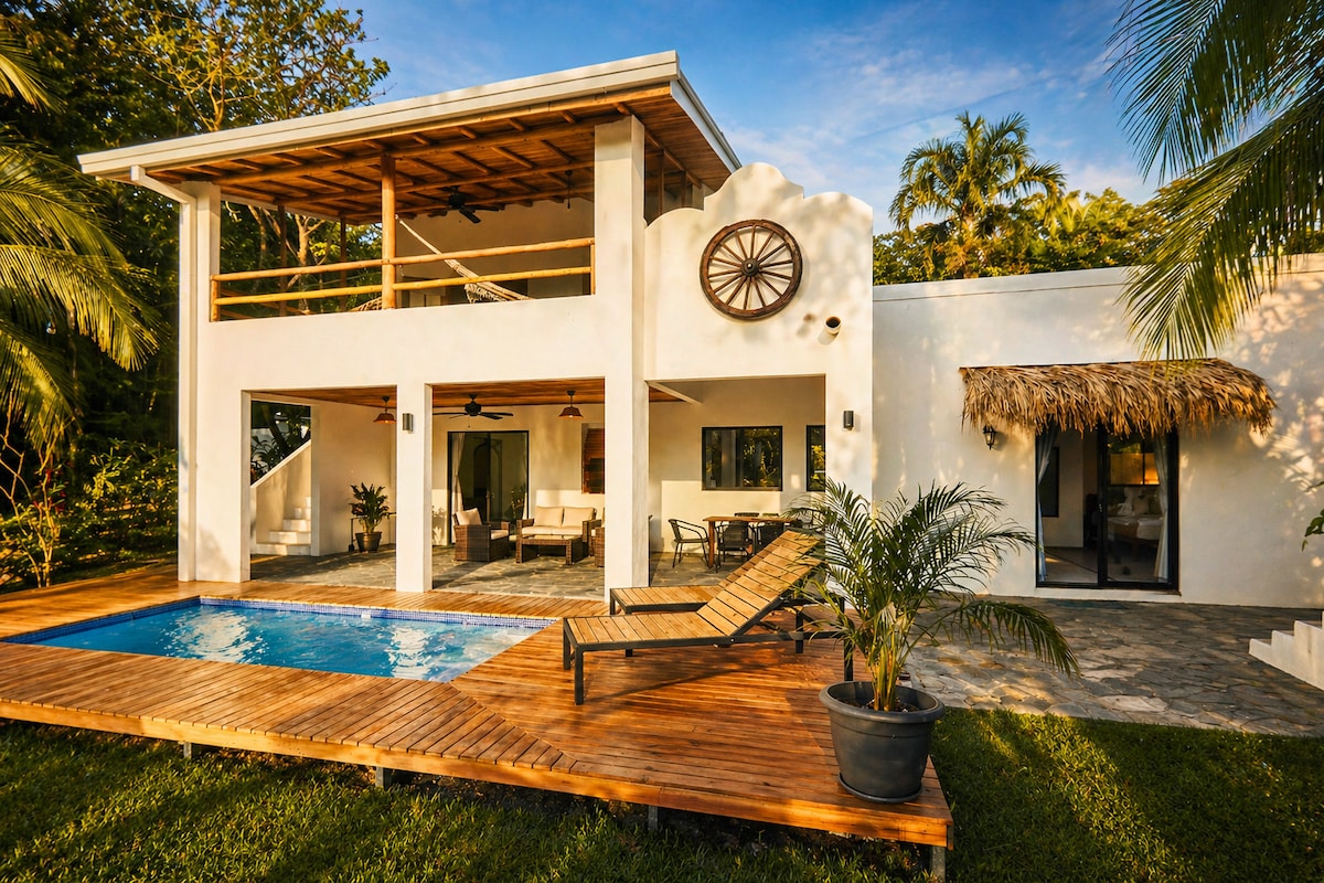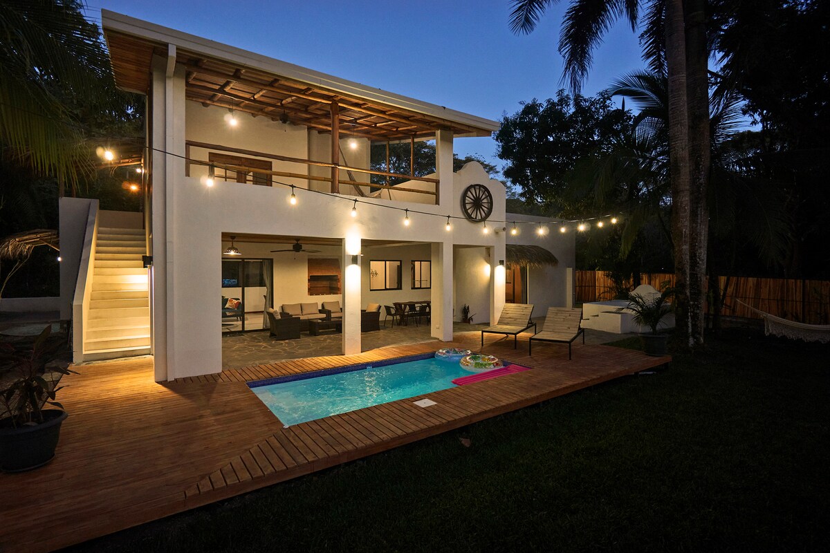 Modern Home in FAMILY FRIENDLY, SAFE & SECURE,24/7 GATED BEACHFRONT COMMUNITY (LOS DELFINES GOLF & COUNTRY CLUB)🏄🏼♂️🌈🌴 IN TAMBOR ( all within minutes to 7 more local beach locations) 🏡 PRIVATE BACKYARD, COVERED PATIO, PRIVATE POOL & OUTDOOR Lounge FURNITURE 🏄🏼♂️5 MINUTES WALK TO our PRIVATE 11KM BEACH⛱ ✅GROCERY/ LIQUOR STORE ✅GOLF CLUB HOUSE & RENTALS ✅ BEACH RESTAURANT ✅ PLAYGROUND ✅SLEEPS Up to 7 GUESTS ✅KING, QUEEN, DOUBLE BED BUNK BEDS ✅ 3 SMART TVS & A/C&100 MBPS / FIBER OPTIC INTERNET