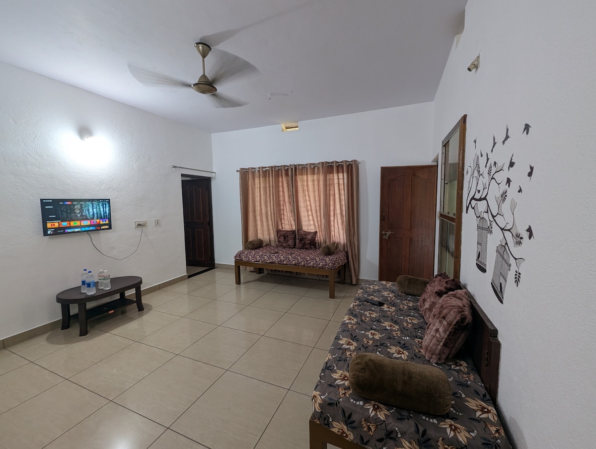 Relax with whole family at this peaceful 2BHK fully furnished property. Located just 5KMs from Malpe beach, 2KMs from NH 66 and 7KMs from Udupi city center. Equipped with Functional Kitchen with Refrigerator, Gas stove, Mixer Grinder, Pressure Cooker, Chapati making setup. Power backup, AC, TV, Internet & Washing Machine. Parking space available for 3 cars. Grocery and vegetable shops are available at walkable distance. Zomato & Swiggy food delivery is available. STRICTLY FOR FAMILY ONLY.