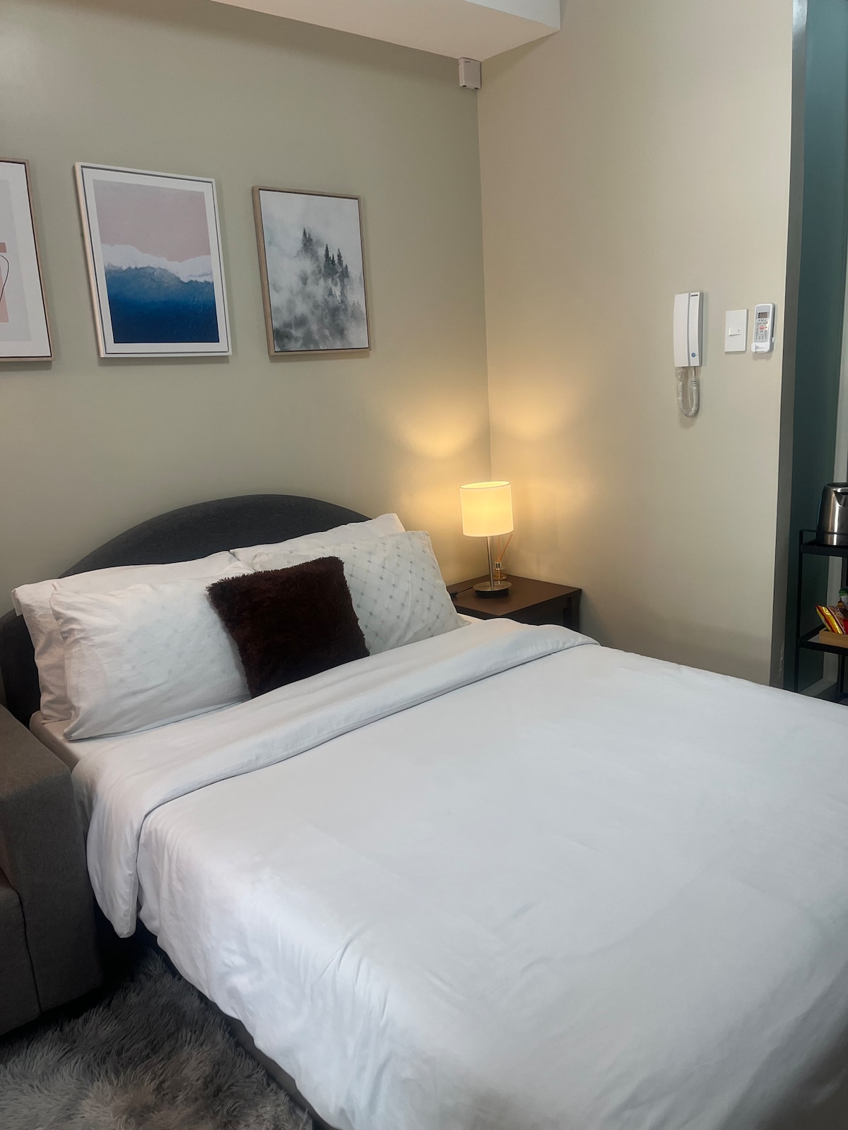 Coziest 2-bedroom in Light Residences! Queen-sized bed and a pull out bed on the first bedroom, and a 2nd queen-sized bed on the second room! Get your much needed break in this unit with our 55' TV with Netflix, fast WiFi, cold aircons, instant-on hot water too! Note: There is pay parking at Light but we suggest in nearby Greenfields or along Pioneer for the best rates.