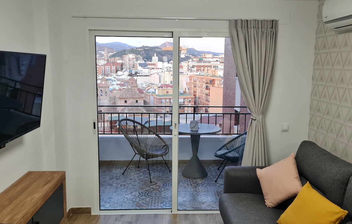PENTHOUSE in the center! Spectacular brand new designer penthouse of 50m2 and terrace with sea views of 25m2. Located in the heart of the Soho neighborhood, recently renovated, with design details and good taste. Ideal for couples, groups of friends and families. On the 10th floor and without noise, you will come out and find yourself next to everything. Just 7 minutes from C/ Larios and 10 minutes from the beaches. Ideal for walking to all places of interest. SmartTV, Wifi and optional parking.