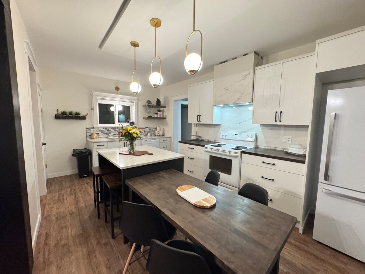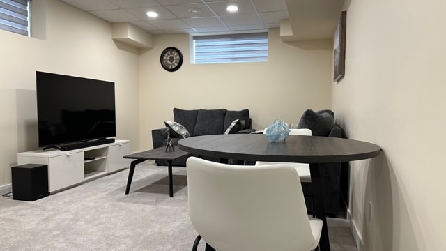 Welcome to our spacious full basement suite! Nestled in a quiet neighborhood, this suite offers a prefect blend of comfort and convenience. With its separate entrance and keypad for check-in, the suite provides privacy and a peaceful atmosphere for your stay. The open-concept design creates a warm and welcoming ambiance, featuring a spacious living area, kitchenette, and a cozy dining space. The tastefully decorated bedroom boasts a plush queen-sized bed, ensuring a restful night's sleep.