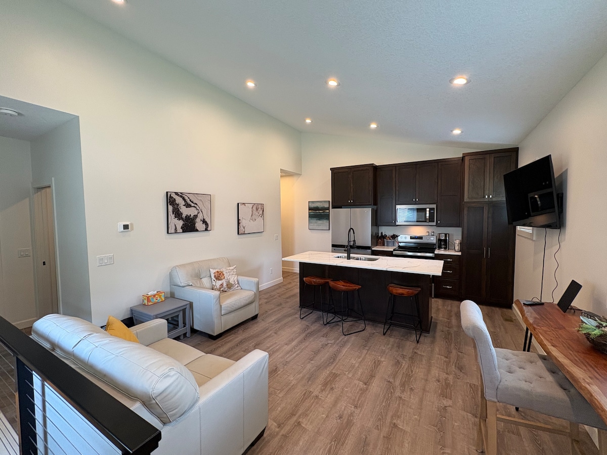 Relax in style at our spacious lower unit in Maple Lake! Enjoy a massive 75″ Smart TV, plush couches, and a roomy dining area perfect for gathering. The fully stocked kitchen comes with all cooking essentials plus complimentary water and snacks. Drift off on 12″ memory foam beds and pillows. Private washer and dryer for your convivence, Nestled in a quiet neighborhood, close to parks and surrounded by Minnesota’s beautiful lakes, this retreat blends comfort, convenience, and relaxation!