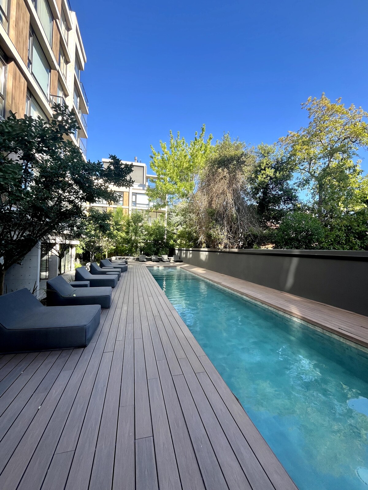 Just 2 blocks from Guemes Mall and 5 blocks from Paseo Aldrey The building has a covered garage, 24-hour security, an outdoor heated pool (Dec-Mar), a gym, a meeting room, and a laundry room. The unit has a balcony, private semi-covered space with electric grill, refrigerator with freezer, microwave, dishwasher, washing machine, wine cellar, two smart TVs, hot and cold A/C, heating, WIFI, coffee maker, electric kettle, toaster and hairdryer.