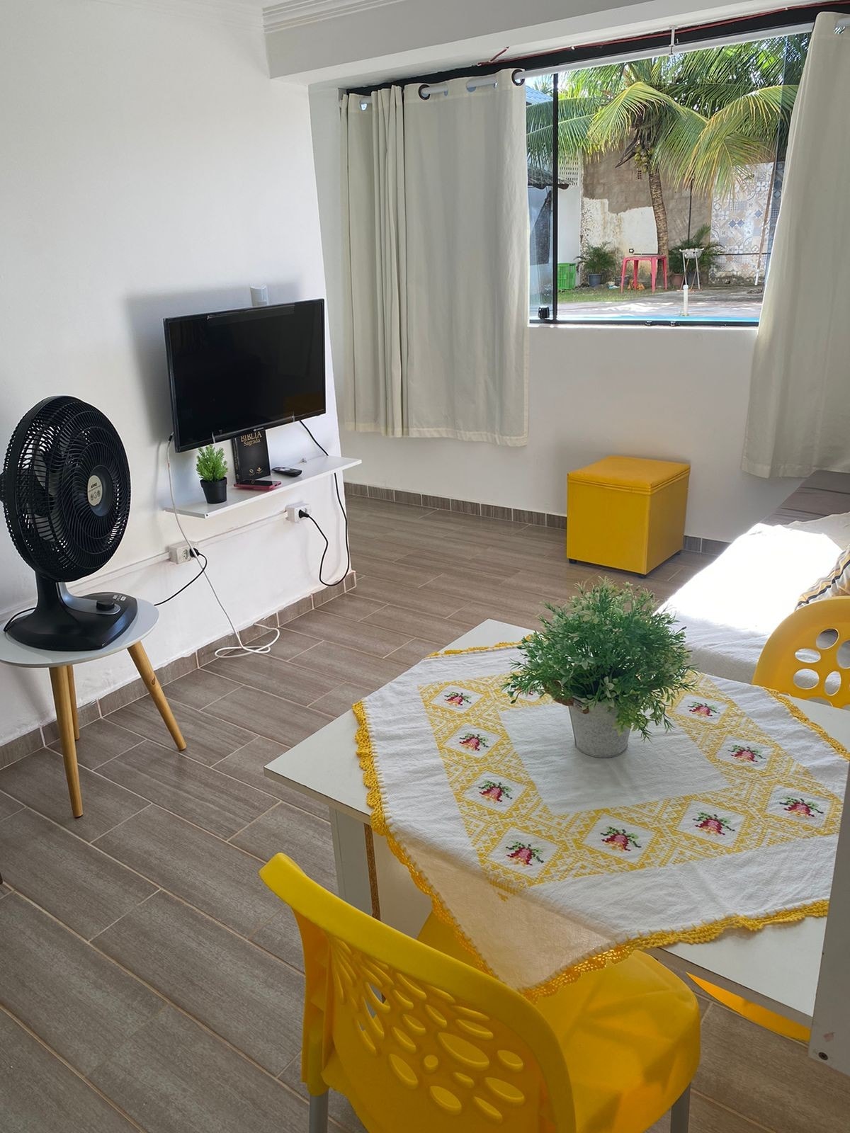 Cozy flat with living room, bedroom, kitchen, terrace with hammock, bathroom and service area. It also has a smart TV, air conditioning, microwave, cook top, utensils, bed/bath linens and parking. Pets are welcome, but always let us know beforehand that they will be part of the stay. I am in the best neighborhood in the city, Carvão, right next to the Center, just a 6-minute walk to Maragogi beach.