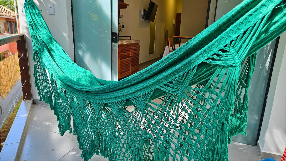It is a calm and stylish space 200 meters from the beach, amid native vegetation! We are LGBTQIAP+ friendly and because we are away from the core of the community we enjoy silence and tranquility but five minutes from the hustle and bustle! The suite overlooking the trees is a guarantee of rest. The kitchen with a piaçava ceiling is beautiful and is prepared with the essentials. The bathroom has reserved spaces that ensure your privacy. Relax in this space! You'll love it!