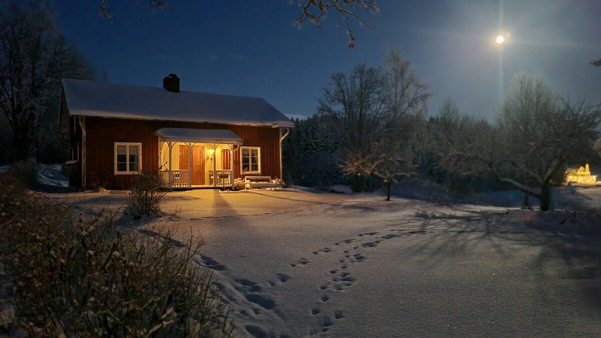 In a quiet environment close to nature, you can recharge your batteries in this cozy cottage. Newly-renovated kitchen & living room in the fall of 2024 In the evenings, you can soak in the wood-fired hot tub (new in fall 2025) where the senses relax. If you are still frozen, you can jump into the grill hut & enjoy a sauna from the wood-fired unit. New fall 2025 Electric car charging box! Ica store, gas station 2 km Proximity to Finngårdar & hiking trails as well as skiing & slalom Close to forest, nature & mushroom picking