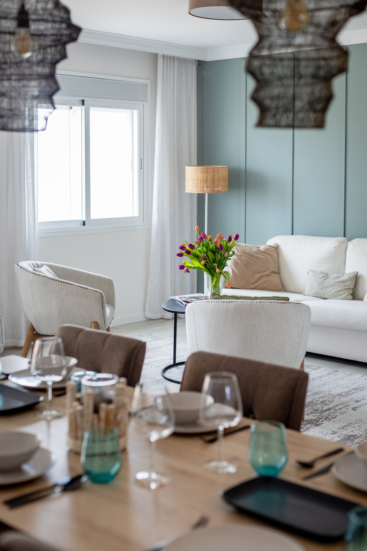 Have an unforgettable stay at this stunning & central apartment. The high ceilings and the contemporary design create a luxurious yet charming ambience. Enjoy the historic center views from the balconies and the high windows. Located in the heart of Malaga, steps away from Malaga's main attractions: calle Larios, the Cathedral, Atarazanas market. Although various shops and businesses will be at your fingertips, the apartment feels peaceful and secluded thanks to the soundproof windows.