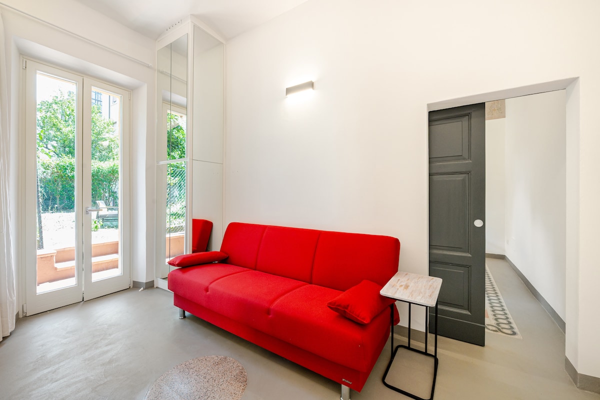 Giovanni XXIII Apartments: Spacious ground floor apartment with independent entrance in a terraced house. Private parking space and garden. In a quiet area, a 10-minute walk from the square of Assisi, at the foot of the Regional Park of Mount Subasio. Nearby shops and bus stops. The apartment consists of a large living room with fully equipped kitchen, a double bedroom plus a reserved area for a single bed, private bathroom with washing machine.