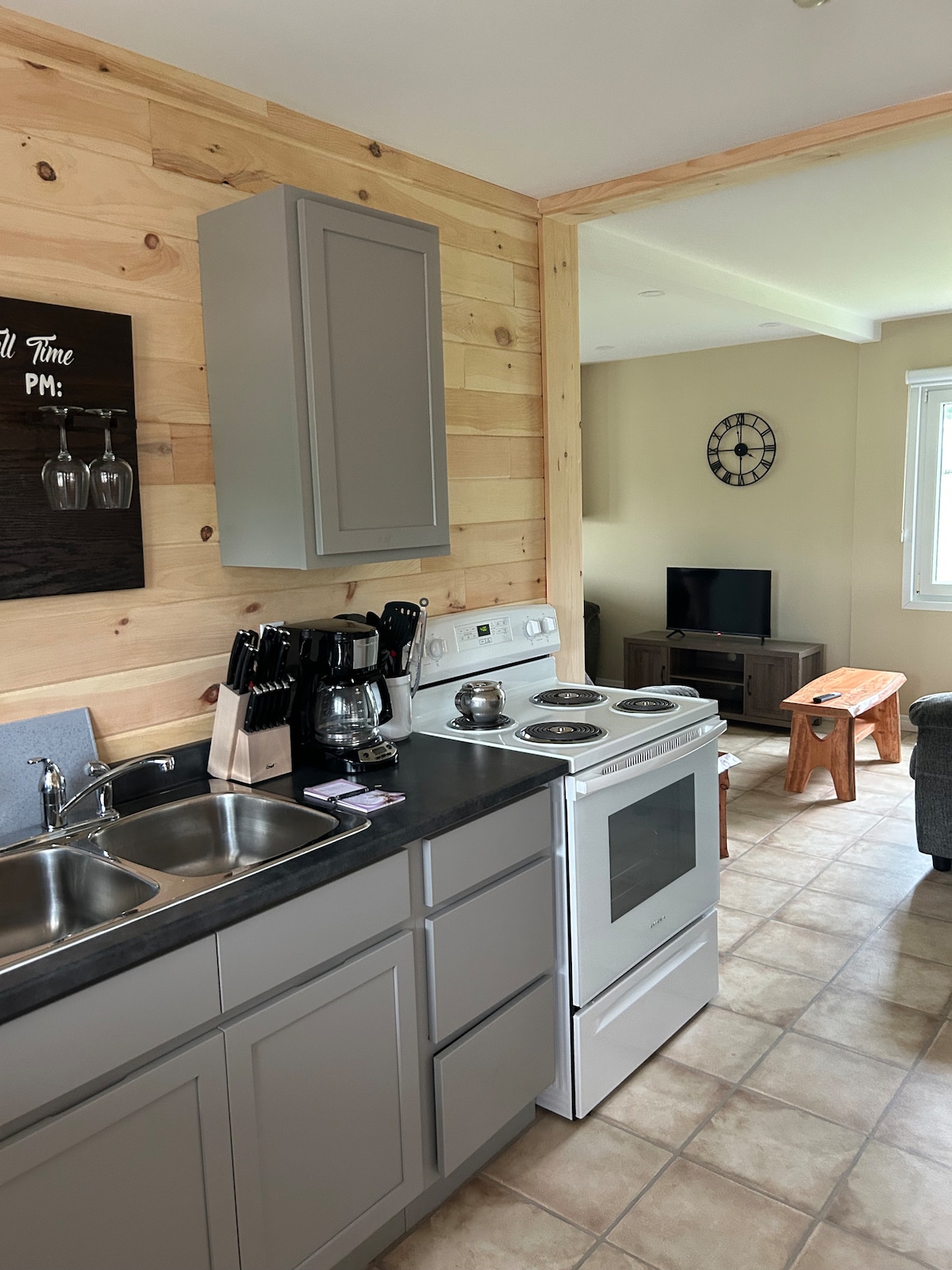 This one bedroom cottage is located in Margaree Centre. Our four, full housekeeping cottages sit along the Margaree River, just minutes from the Cabot Trail. Cottage 3 has been recently renovated inside and out. New bathroom, upgraded kitchen, and a queen bed with a luxury Logan & Cove mattress. The cottage also has a sofa bed in the living area for extra sleeping space. Check in is anytime after 3pm. Check out is 11am.