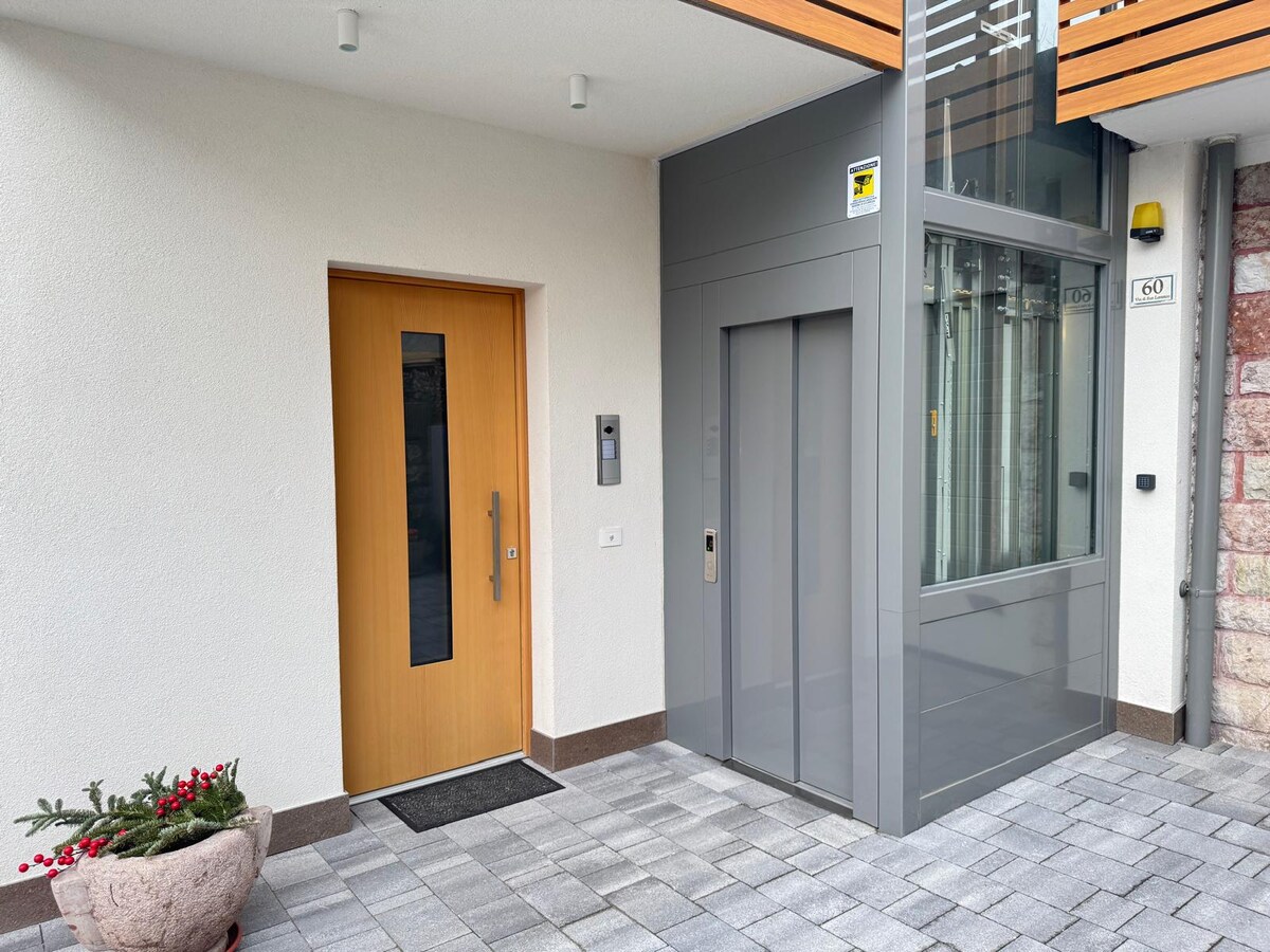 Appartamento moderno e accogliente con parcheggio privato recintato gratuito, garage per bici e giardino con BBQ / Gazebo. Situato al 2° piano con ingresso autonomo, ha 2 stanze con 2 posti letto ciascuna, open-space con cucina e soggiorno con divano letto matrimoniale, bagno con finestra e ampio balcone vista montagne perfetto per prendere il sole, mangiare all'esterno e godersi il panorama. È attrezzato di lavastoviglie, lavatrice, macchina Nespresso, Wi-Fi e Smart TV. Ospita fino a 6 persone.