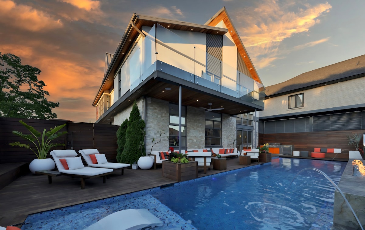 The stunning house in Etobicoke is only a few minutes from the Airport and City Centre. This spacious open concept, rare luxury modern home, is beautifully designed and decorated. It is a fully stocked home and will have everything you could ever wish for a short-term stay. Perfect for large families and groups! min age 25 yrs to book. Room 1 king bed Room 2 queen Room 3 twin and another twin roll out Room 4 queen no party policy or excessive noise. this is a quiet listing