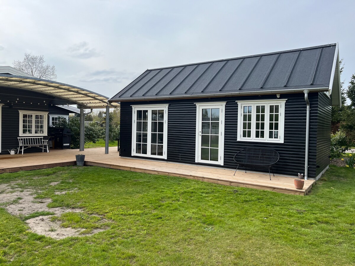 Kick back and relax in this calm, stylish space. This newly refurbished cabin is located 5 minutes walk from the family friendly sandy beach of Marielyst. The cabin is bright and airy with its open plan living room and fully equipped kitchen with access to a decked area where you can enjoy the evening sun. It's a short bicycle ride to local shops, a butcher and a variety of restaurants if you don't feel like cooking.