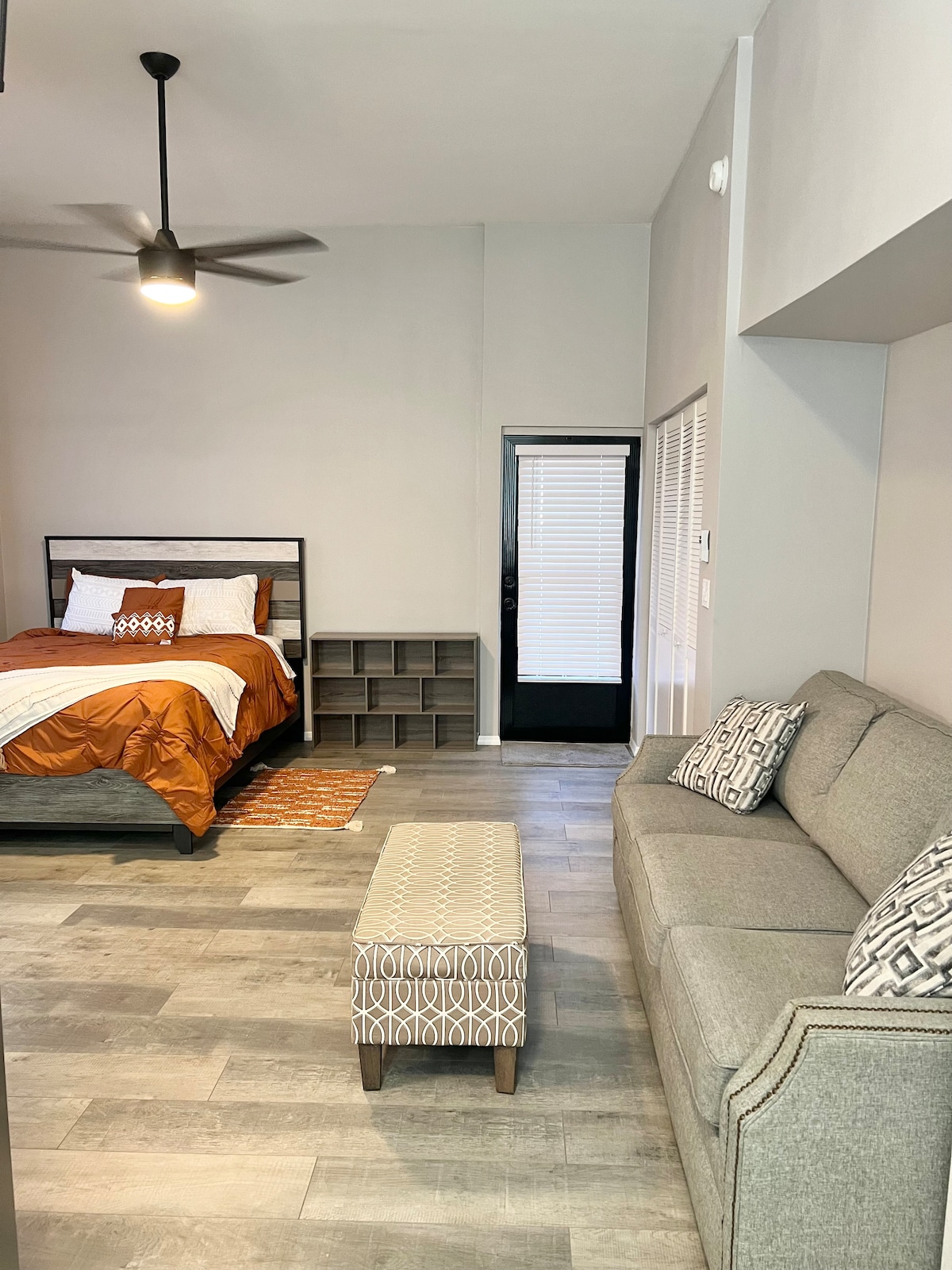 Private entrance with a king bed, walk-in shower, keurig, mini-fridge, air fryer, smart TV, and work station. Centrally located in Ocala - 5 minutes to downtown, 20 minutes to the World Equestrian Center, Florida Horse Park, and HITS. Perfect for someone on a work trip or a duo enjoying what Ocala has to offer. Please let us know if you will have one or two guests when you book so we can set out the right amount of linens for you.