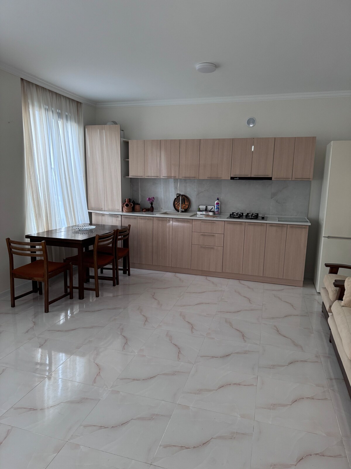 Wake up to soft light and a stunning view of Mount Ararat. This bright and cozy flat is just a few minutes’ walk from Republic Square—close to everything, yet quietly tucked away. With large windows, warm minimalist design, and thoughtful details, it’s the perfect spot to relax, create, or explore the city. Whether you're here for work or wonder, this space welcomes you with calm and charm.