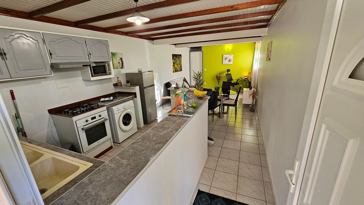 Hello We offer you our cute little bungalow. It is attached to our house but only the main entrance is shared. You will have your own private and independent space. It consists of a 17 m² bedroom with ensuite shower room and a 15 m² terrace with outdoor kitchen. Guests can enjoy the view of the Pitons du Carbet while sipping their ti punch. A small, little-known and charming beach is within 10 minutes' walk.
