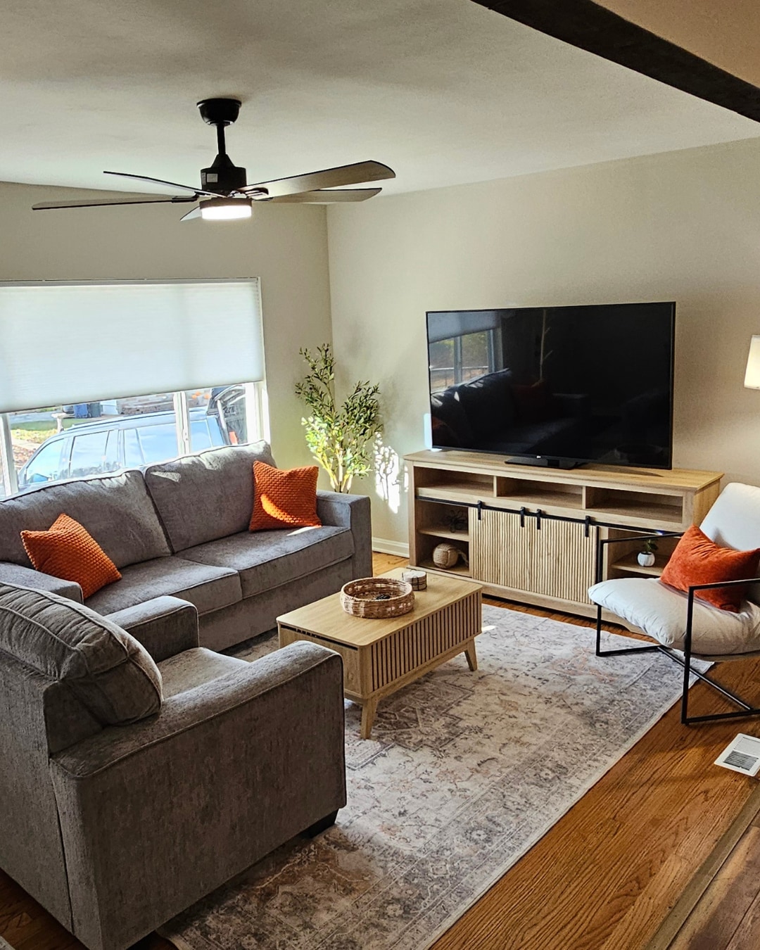 Experience luxury and style in our St. Louis home. This second-floor residence features 2 modern bedrooms, a cozy living room, a fully equipped kitchen, a stylish bathroom, and a dedicated workspace with high-speed WiFi- blending comfort and elegance. Located in a secure Maryland Heights community, just minutes from Creve Coeur Lake, Westport Plaza, Hollywood Casino & Amphitheatre, and historic St. Charles. With plush bedding, premium amenities, and ample parking, we promise a seamless stay!