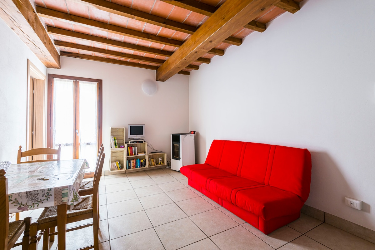 Let yourself be seduced by nature and the view. The accommodation is located in the village of the ancient hamlet of Montericco di Albinea, near the medieval castle of Montericco, from which you can overlook the Po Valley. Just 2 km from the center of the village and just 15 minutes from the city center of Reggio Emilia. It is a landmark, completely renovated: consisting of the first floor, kitchen and living room, an entrance and on the second floor a bathroom with shower and a double bedroom. It has a covered space for bikes and motorcycles.