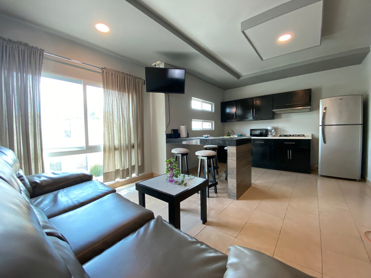 Beautiful apartment! 💤Relax in a cozy loft in a great location. 😌🍃Immerse yourself in a relaxing experience in this loft inspired by nature, plants, wood textures and wicker details, every corner is designed to give you calm and comfort. ☀️Soft colors, warm light and a harmonious atmosphere await you to disconnect and recharge.