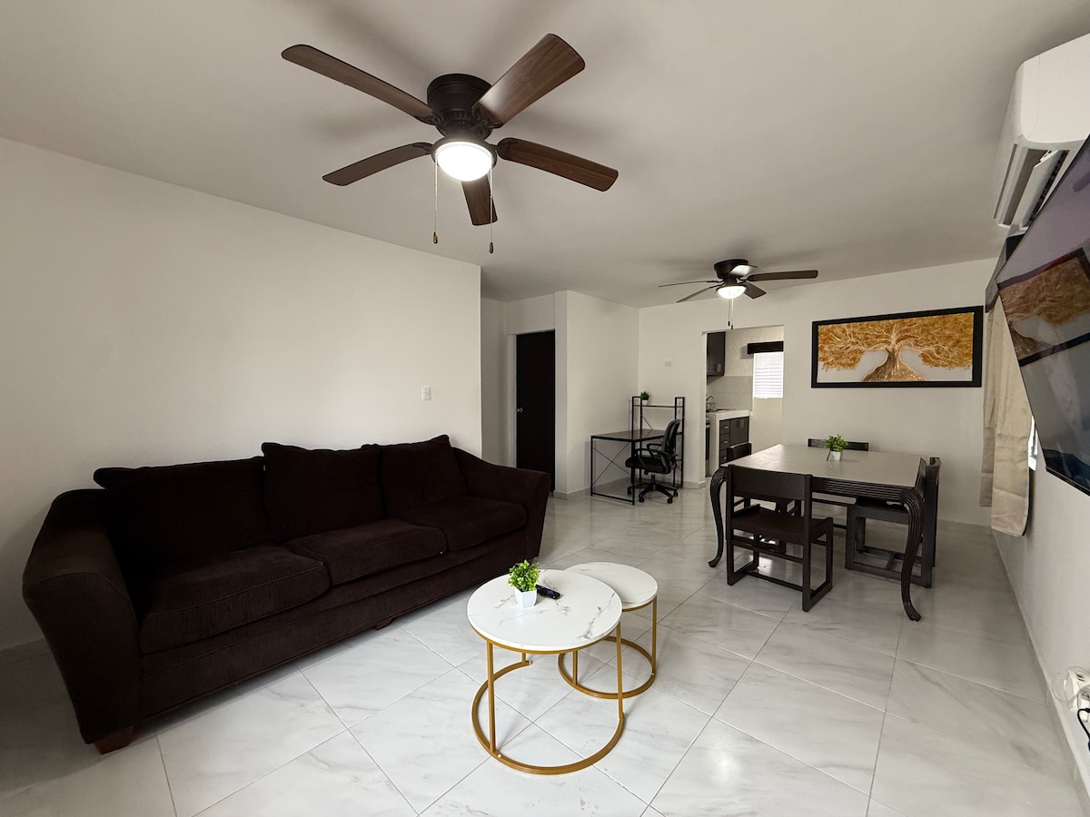 Enjoy your shopping in Brownsville. Carry out procedures at the American Consulate or Cas. We are just 2 blocks from the International Gateway Bridge. We have a very comfortable apartment with nice finishes, two bedrooms and two full bathrooms for up to five people. Master bedroom with king-size bed and full bathroom. 2nd bedroom with 2 single beds and sofa bed. Well-equipped dining room and kitchen. 3-door refrigerator and electric stove. Smart TV, balcony with barbecue. Gym.