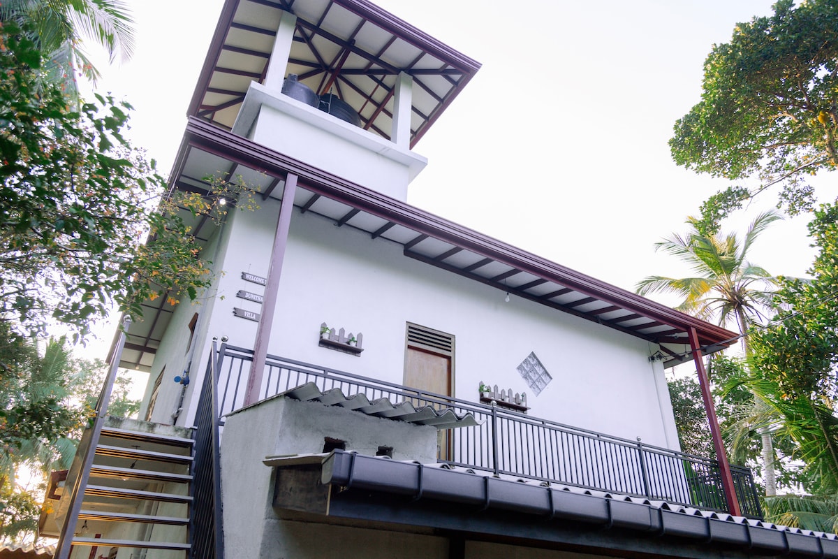 #TS2W we are the Turtle- Surfer- and Whale-Watching Treehouses and Villas Madiha/Mirissa - surrounded by a little hill, tropical jungle, and a private beach garden the newly constructed Bungalow with the special natural bricks which keep the indoor cooling. Up to 4 people - 2 bedrooms with ac and private bathroom fully equipped kitchen - sunrise coffee bar- outside rainforest shower - beautiful Terrace - WiFi - and night Security guard