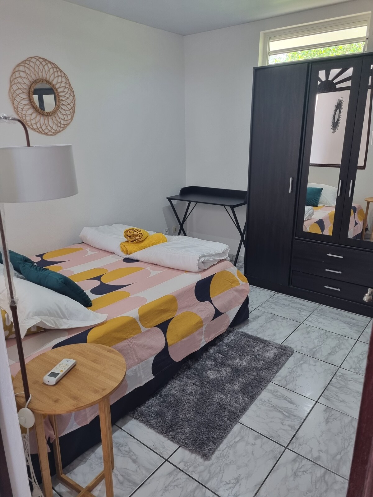 Hi , Our large 36 m2 Bis studio located in a subdivision in the village of Matoury is a 5-minute drive from Félix Eboué Airport. Fully equipped with a double bed, shower room, separate toilet, kitchen and office area. The place is for two people. It is available with free parking. It is located next to a large park that runs along a watercourse, a trail. A Sunday market is within walking distance and 10 minutes from a shopping area by car.