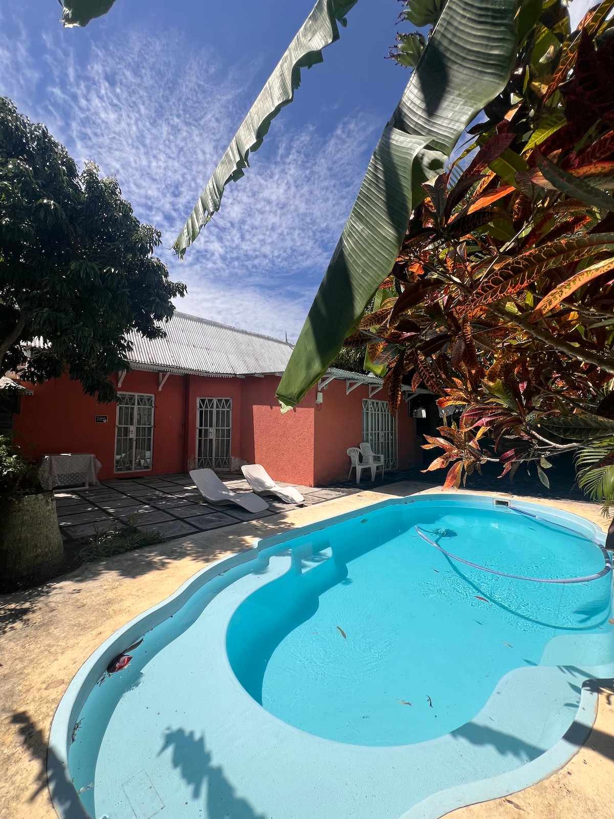 Our little guest cottage is an amazing little "nest" for holiday makers. Tucked right under an old tamarin tree, this little gem studio faces the mythical "Gorilla Mountain" and is simply the most peaceful base from which to discover the West Coast. It's forms part of our one acre "farm-style" property in a gated estate, just 5 mins drive from Tamarin Bay as well as shops and restaurants. Enjoy quiet walks and swims in the pool.
