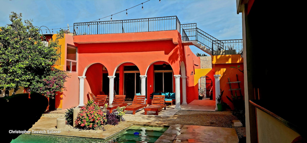 Beautiful small house in Merida's historic center. Ecological house with solar heater. Restored with traditional materials from the region, such as Chucúm on the walls, to decorate. Comfortable and sophisticated. Enjoy the pool and this little oasis after a walk in the city. Strategically located near Plaza de San Cristobal, Mercado de la Ciudad San Benito and Parque La Mejorada. It has everything you need to enjoy, enjoy and relax.