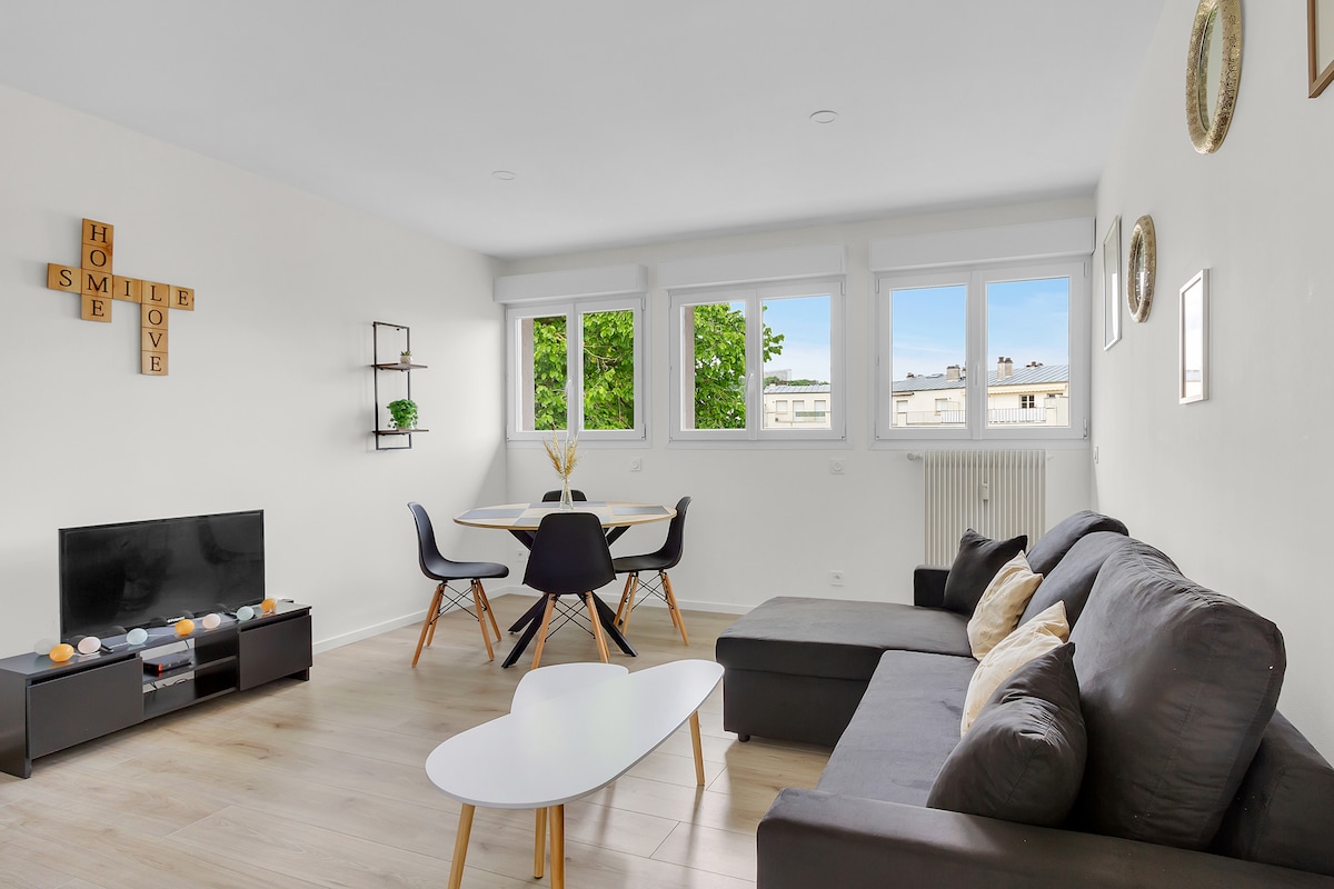 💚 DÉPLACEMENT PRO, ou SEJOUR ❤ 2 personnes (+2 enfants possibles !) 💚 Tout pour être AUTONOME ! Entrée libre, WIFI, prise USB, PARKING, cuisine équipée, BOULANGERIE à 2 min à pieds, ÉQUIPEMENTS +++ 💚Tout pour prendre soin de soi ! LITERIE HAUT DE GAMME, déco soignée, logement CALME, gourmandises sucrées, institut esthétique à 2 min 💚 Tout pour s'occuper ! Accès NETFLIX, jeux, guide des bons plans sorties, PARC juste à côté de la résidence..