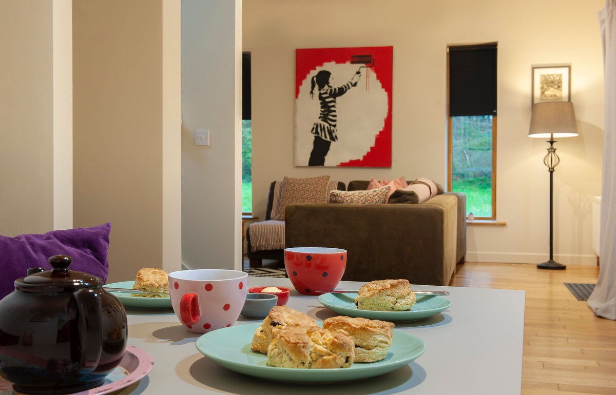 This spacious stylish place to stay is perfect for a couple's tranquil retreat or a friends relaxing/action packed getaway. There are plenty beautiful , scenic hills & mountains to climb & we are 5 mins away from Lough Mask. We have a great parkland golf club & racecourse close by. It is also ideal for a couple with a child aged 3-18 yrs as 2nd bed is a sofa bed in living room. Note: no long stays Jun- Sep