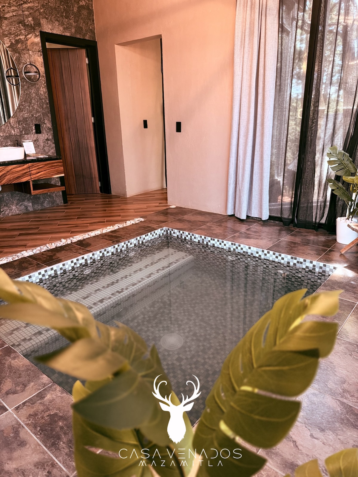 Cabaña en Paseo de los Cazos, perfecta para disfrutar en familia o con amigos. Ubicada a solo 5 minutos del centro, 15 minutos de la cascada y 3 minutos de la renta de caballos y motos RZR. De estilo mediterráneo y diseño sustentable, construida con materiales naturales que crean un ambiente cálido, relajado y en armonía con la naturaleza. Cada espacio está pensado para convivir, descansar y crear momentos inolvidables rodeados de tranquilidad.