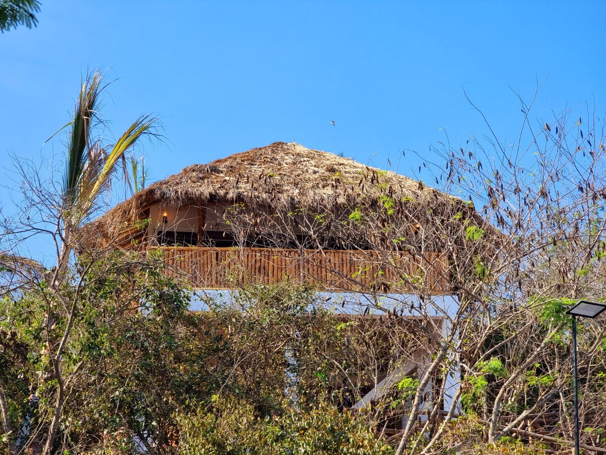 Relájate en este espacio tan tranquilo y elegante. Cabin Style place, Its a very unique experience you are surrounded by trees and Plants very private Romantic Setting, you are 2 minutes away from the Beach. The Cabin itself has AC inside beautiful finishes and its Brand New. It also has a private Palapa Setting with a Dining table, Bar and Sofas Just to enjoy the sound Of The trees and Some Exotic Animals to look at. A truly one of a kind romantic setting.