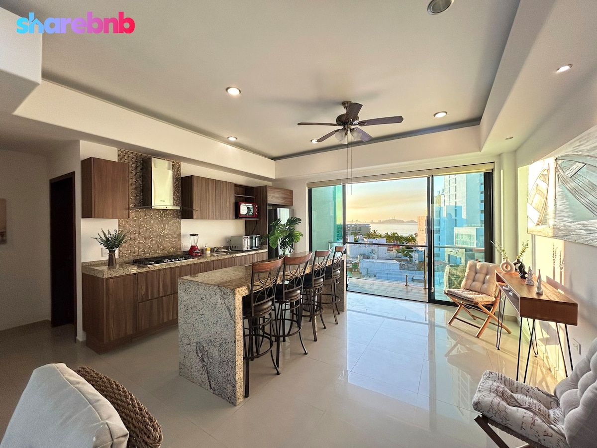 Enjoy luxury and modernity in this exclusive apartment in Mazatlán. From the balcony, take in spectacular sunsets over the ocean. Located in one of the port’s top condominiums, you’ll have access to first-class amenities: an infinity pool, spa, and relaxing common areas. The private beach is spacious and pristine, perfect for special moments with friends or family. Experience a unique stay in a space designed for your comfort.
