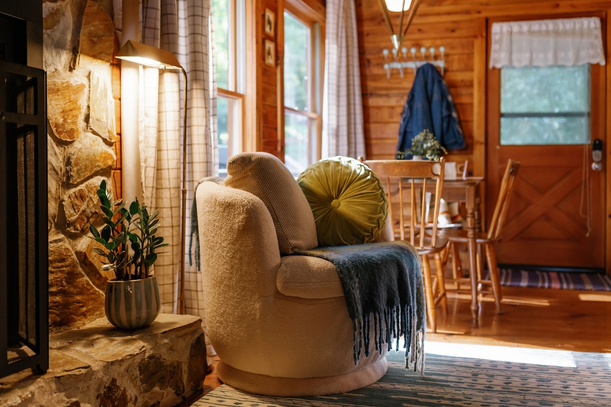 NEW REMODEL! Step into the timeless beauty and elegance that Restore embodies in its art studio setting. You'll feel like you've been transported into a Biltmore style cottage, nestled in the forest. 4WD Recommended. Ladder access to Loft. Enjoy the outdoor cedar Sauna, Fire Pit, Grill or lounge inside with the electric fireplace and stream your favorite show. Fully stocked Kitchenette for light cooking. Dog friendly 🐕 10 mins to Downtown Blue Ridge - wineries, restaurants, hiking, lake.