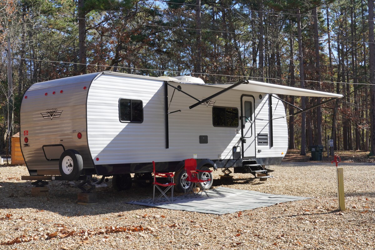 New camper that sleeps up to 5 located in SoHo RV park in Hochatown. Located within 10minutes drive of all the fun activities offered in the area. The camper has a bedroom separate from the rest of the camper, bunk beds, and a fold out couch. Accommodated with everything needed to make your stay comfortable such as linens and cookware. It is fully connected to all utilities and wifi is available. Private firepit and community playground steps away. Enjoy the experience of camping made easy!