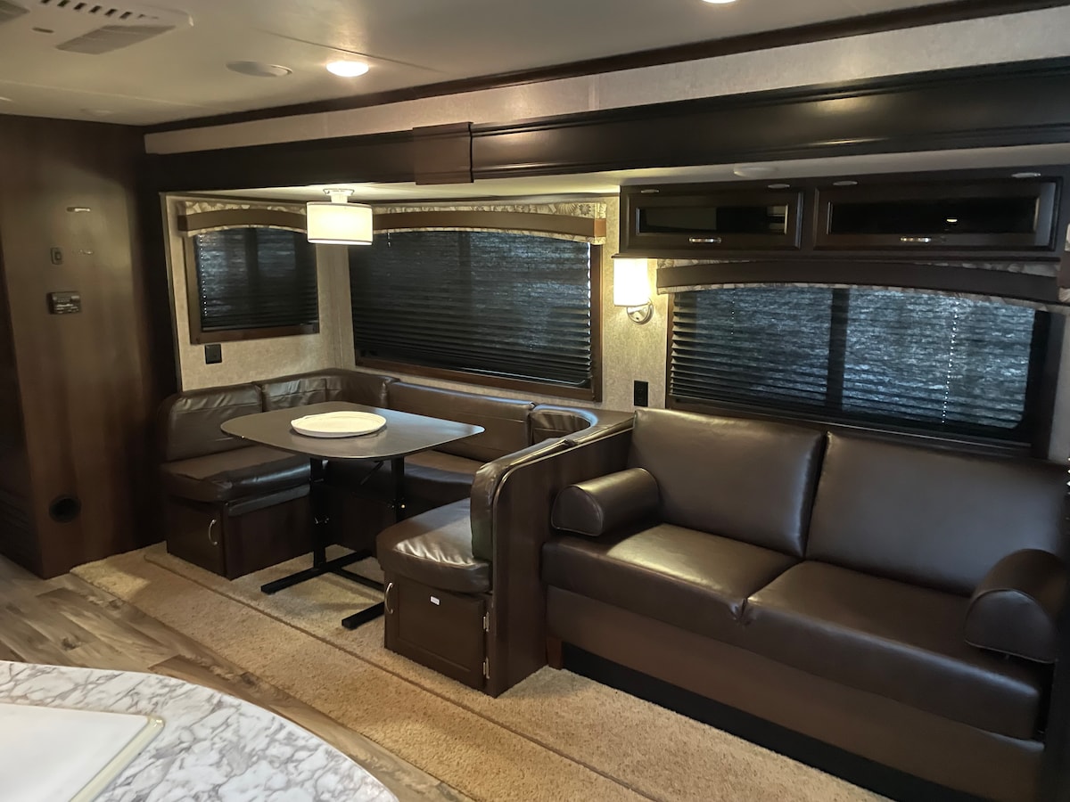Experience the ultimate adventure and memorable stay in our charming and very clean and cozy 30ft RV. Fully equipped with everything you need! Super comfortable and private queen bedroom with TV. Bunk beds your kids would love, large living space and dining area with 50" smart TV. kitchen equipped with everything you need. Coffee maker, toaster, microwave, oven, gas cooktop. We Love pets, you will find pet dishes and cleaning equip in the closet. Large covered deck with bbq and entertainment.