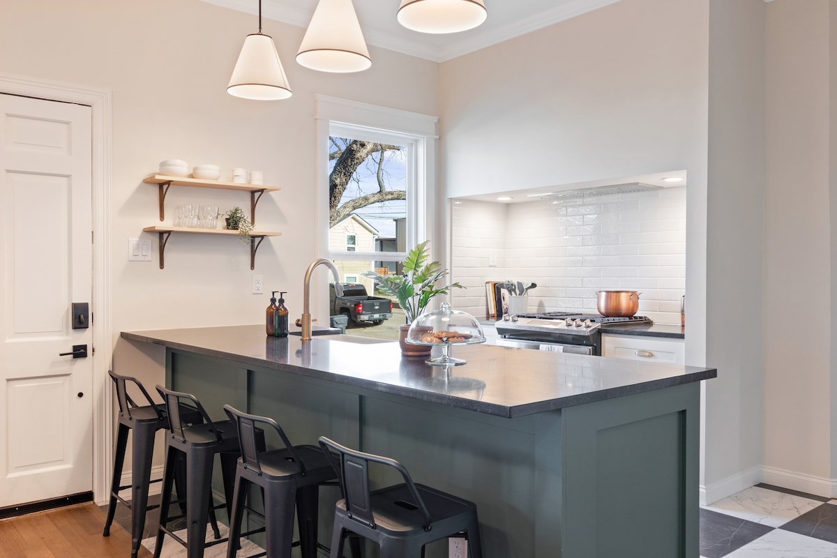 Voted Waco’s #1 AirBNB – , + ! Welcome to Tudor on Austin, a beautifully restored 100-year-old home located in Waco’s most iconic neighborhood—historic Castle Heights. Just a short walk from the Gaines' Castle and Pinewood Coffee, and only 5 minutes from Magnolia and Baylor, this top-rated stay blends timeless charm with modern comfort. Perfect for families and group getaways, the home sleeps up to 10+ and includes thoughtful and beautiful designer touches.